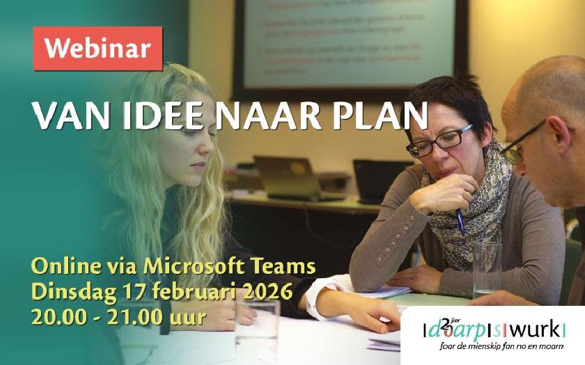 Doarpswurk organiseert op dinsdagavond 17 februari het webinar ‘Van idee naar plan’.
